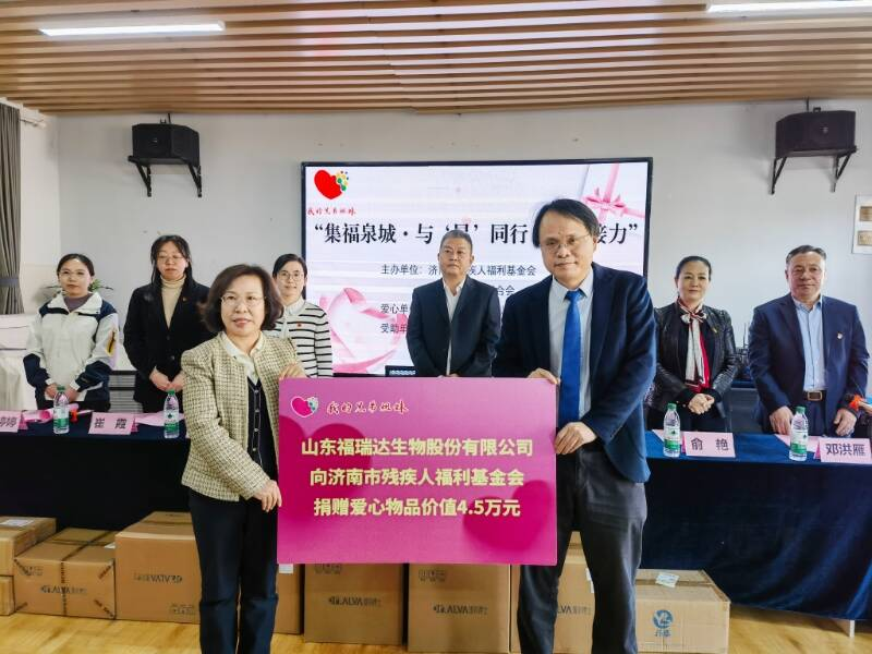 活动现场暖意融融,温情满溢。三方党组织共同签署党建共建协议书,以党建为纽带凝聚多方合力,以共建为抓手推动协同发展,搭建起关爱特殊群体的长效公益合作平台。福瑞达生物股份副总经理杨素珍代表企业,向济南市残疾人福利基金会捐赠总价值4.5万元的爱心物资;基金会在接受捐赠后,为公司颁发爱心证书,对企业勇担国企使命、传递公益温情的善举予以高度认可。自2018年以来,公司已连续八年深耕社会公益事业,常态化开展特殊群体关爱行动,以实际行动践行社会责任,树立了暖心公益的良好榜样。