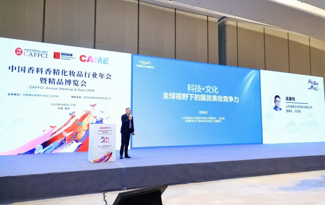 2025CAME期间,福瑞达生物股份董事长、总经理高春明在主论坛上作了《科技+文化:全球视野下的国货美妆竞争力》主题演讲。他从全球产业格局角度深入剖析了科技研发与文化赋能在提升国货美妆国际竞争力中的关键作用,强调福瑞达始终坚持“科技是品牌的骨架,文化是品牌的灵魂”的发展理念,以生物科技创新为引擎,以中国文化传承为根基,致力于打造具有全球竞争力的国妆品牌。