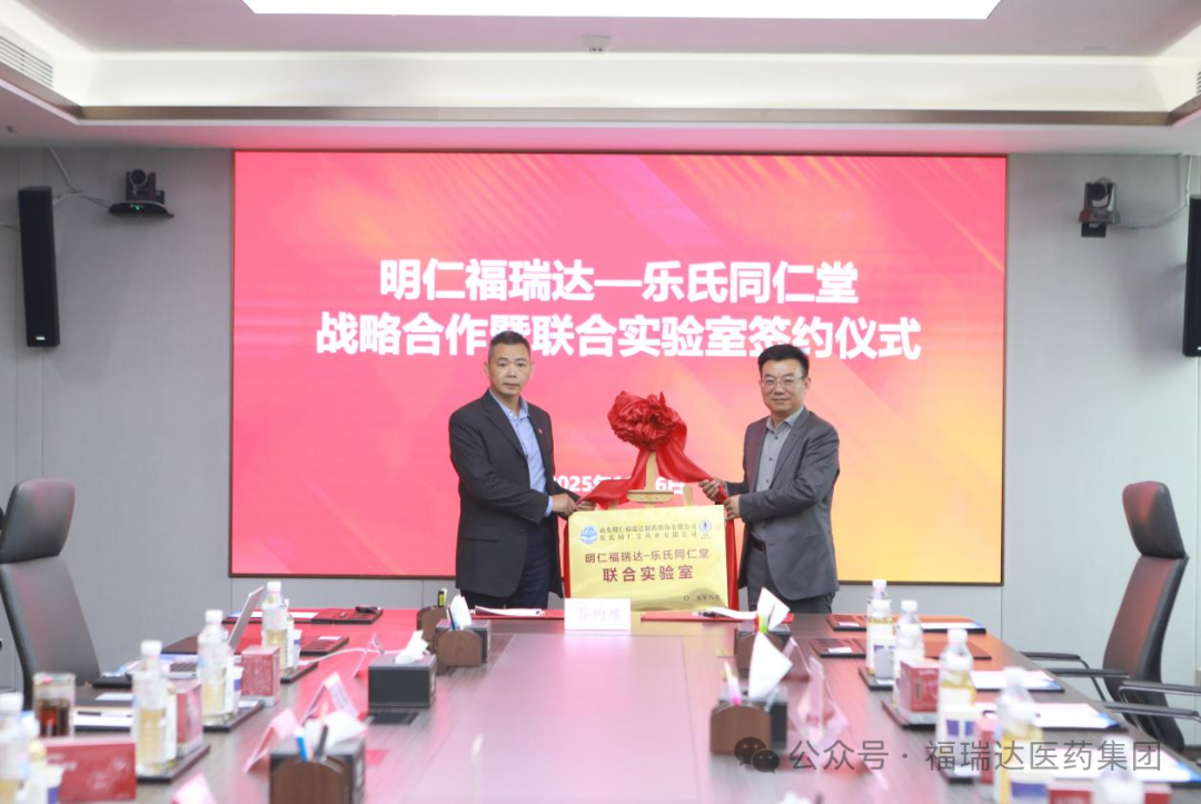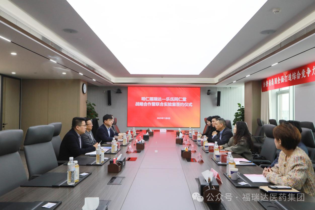 2025年11月7日上午,明仁福瑞达与台湾乐氏同仁堂举行战略合作签约仪式。乐氏同仁堂董事长、第十四代传人乐觉心,与福瑞达党委委员、副总经理,明仁福瑞达董事长、总经理徐传彬共同签署战略合作协议,并为“明仁福瑞达—乐氏同仁堂联合实验室”揭牌。双方合作推出的首款药食同源功能性食品——“阿胶雪妍饮”正式投产上市。
