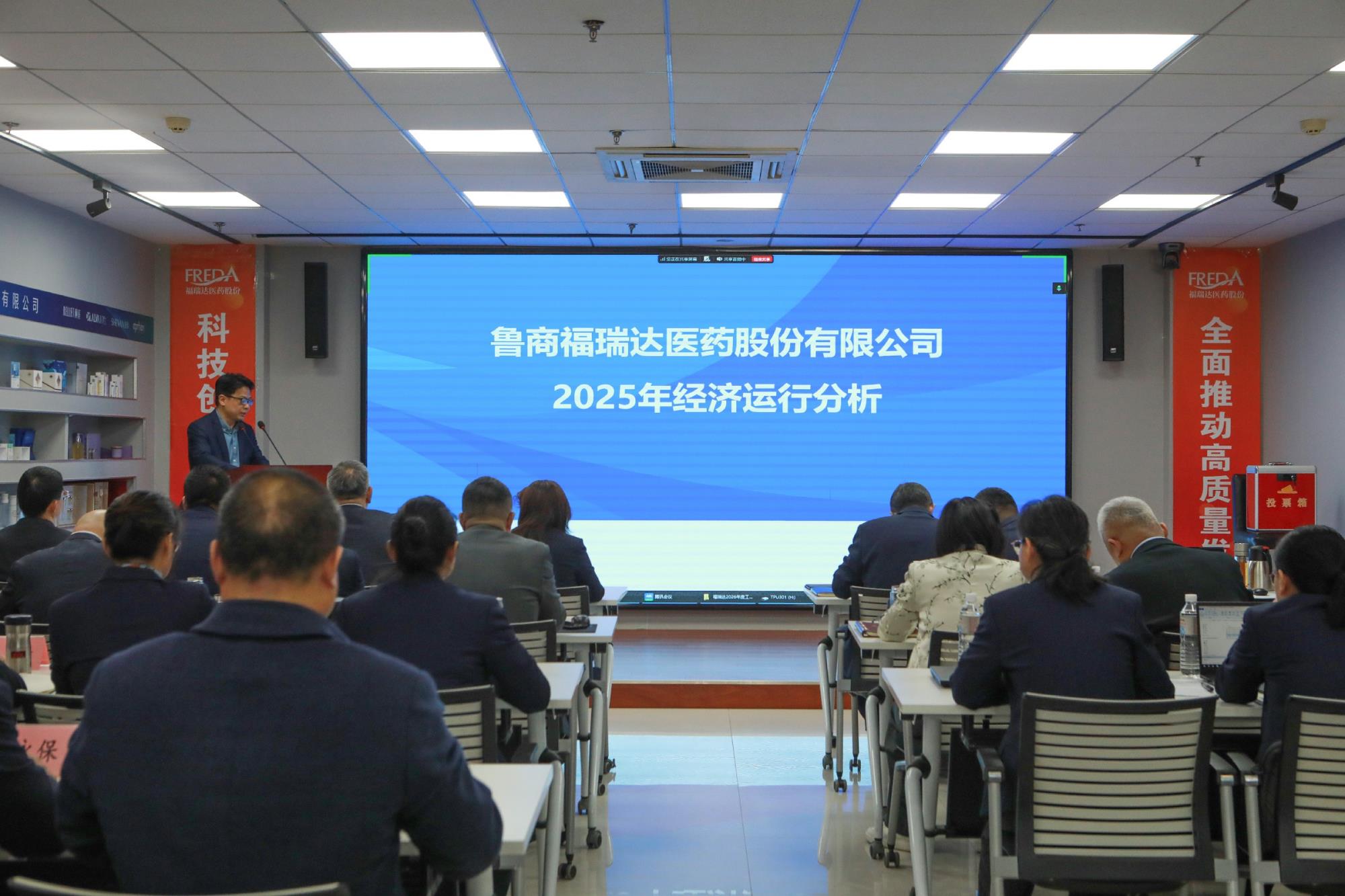 福瑞达班子成员、总部中层副职以上人员、所属企业班子成员、财务负责人等60余人参加现场会议,线上相关所属企业分会场实时同步参会。