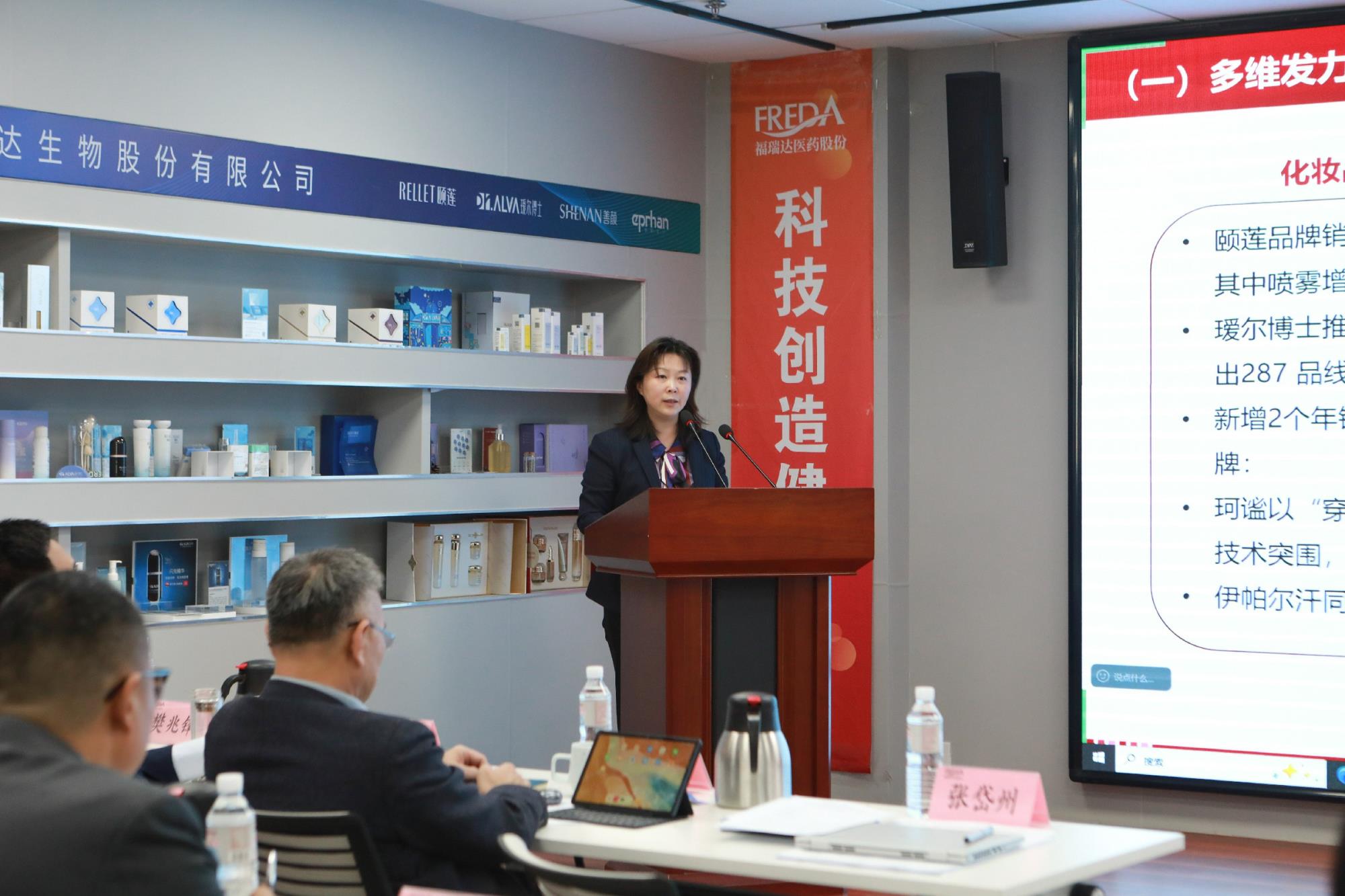 张岱州作题为《创新提质 变革图强 奋力开创福瑞达高质量发展新局面》的讲话。她指出,2025年,福瑞达在集团党委的坚强领导下,全力推进“强创新、拓市场、提质效、促改革、树品牌”工作主线,各项工作取得了新成效。她强调,2026年要紧扣“提质”主题,聚焦“变革”主线,全面推进市场拓展攻坚、科技转化攻坚、运营效能攻坚、创新协同攻坚。一是聚力市场拓展,在夯实发展基础上实现新作为。化妆品板块坚持“双美”生态,构建线上线下贯通、公域引流与私域沉淀协同的全域营销体系。医药板块深化营销渠道和产品体系改革,形成“核心产品保稳定、战略产品提份额、潜力产品促增长、新品求突破”的产品梯队。原料板块推进“医药级、国际化、高附加值”转型升级,深化客户合作与协同开发,优化全球市场布局。二是聚力科技转化,在强化创新驱动上构筑新优势。持续深化福瑞达与省药科院研发一体化,贯通创新链与产业链,巩固合成生物技术引领优势。加速关键研发项目产业化进程,明确路线图,并扎实推进智能制造与绿色低碳升级。三是聚力运营效能,在提升治理水平上激发新活力。构建全面精益管理体系与精准投资机制,持续筑牢合规风控底线。四是聚力创新协同,在构建产业生态上拓展新空间。深化内外部产业协同,将全产业链优势转化为成本优势、创新优势和市场响应速度优势。同时,要筑牢党建引领、改革赋能、安全防线三大基础支撑,以高质量党建凝聚合力,以深化改革破解难题,以稳健经营保障全局。
