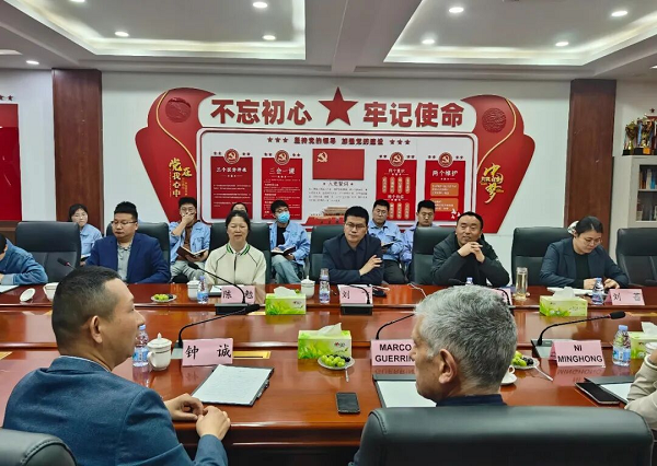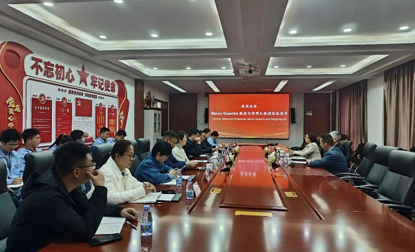 参观结束后,双方举行座谈交流。康传利对Marco Guerrini教授的到访表示欢迎,同时,详细介绍了企业在合成生物学与绿色生产制造领域的最新进展。双方就糖类药物前沿技术、底盘细胞优化、代谢工程改造、成果转化等议题深入交流,探讨未来技术融合与项目合作方向。